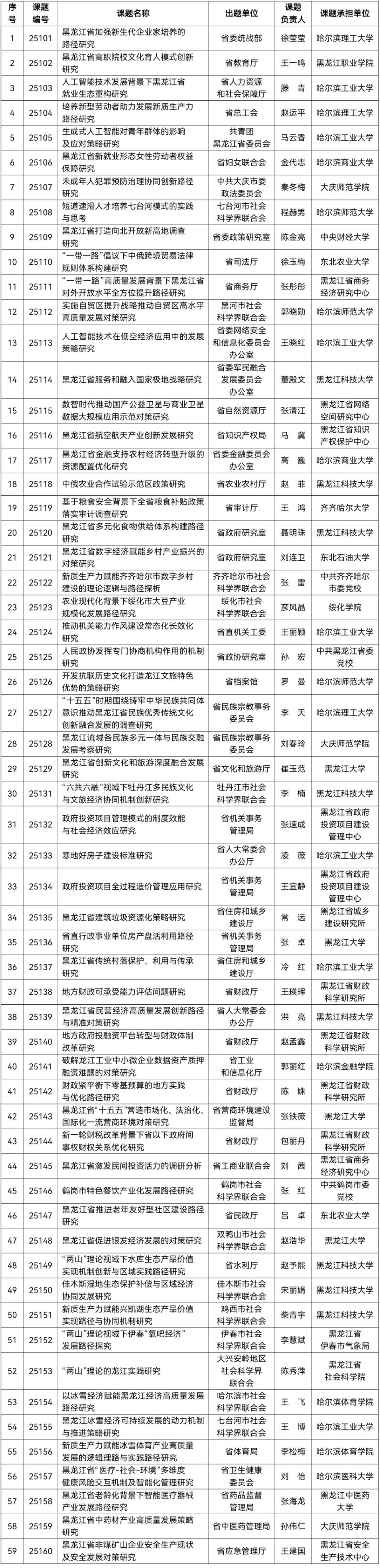 2025年度黑龙江省经济社会发展重点研究课题中标名单