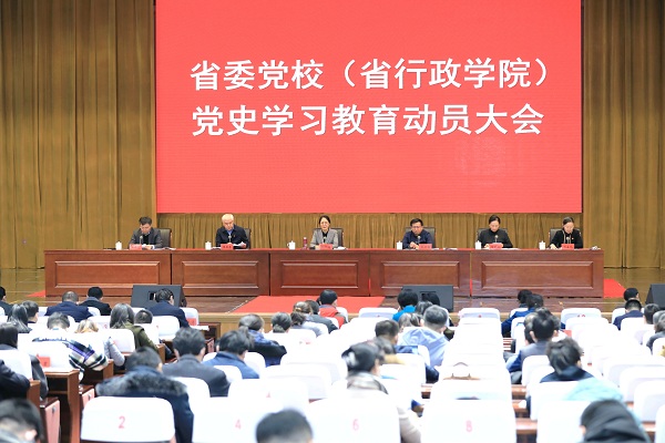 3月10日下午,省委党校(省行政学院)召开党史学习教育动员大会,传达习近平总书记在党史学习教育动员大会上的重要讲话精神、张庆伟同志在全省党史学习动员大会上的讲话精神,对校(院)开展党史学习教育进行动员部署。常务副校(院)长刘红岩出席会议并作动员讲话,一级巡视员韩健鹏、副校(院)长周英东、商晓帆,教育长阎喜凤参加会议。副校(院)长吴子慧主持会议。