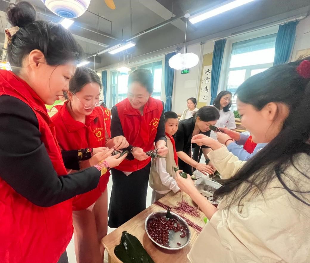 为了让孩子们感受传统节日的氛围,马克思主义学院党支部还精心准备了江米、粽叶、红枣等食材,与“慢天使”的家长们围坐在一起,共同制作饱含爱意与温暖的粽子。当孩子们捧着粽子,用含糊的声音说出“谢谢”时,支部党员们由衷感受到:这场活动不是单向的付出,而是生命与生命之间的温暖共振。