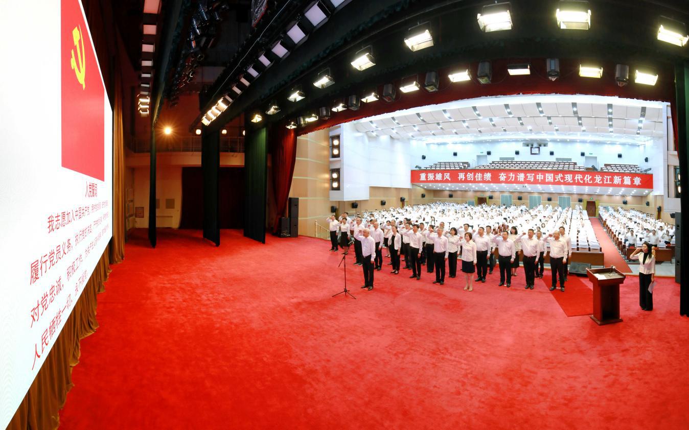 在鲜红的党旗前,全体党员高举右拳,在领誓人常务副校(院)长周英东的带领下,重温入党誓词,“十二句八十字”的铮铮誓言,字字千钧,句句铿锵,饱含着对党的忠诚和为共产主义事业奋斗终身的坚定决心,彰显着党校人“永远跟党走”的坚定信念,场面庄重而肃穆。
