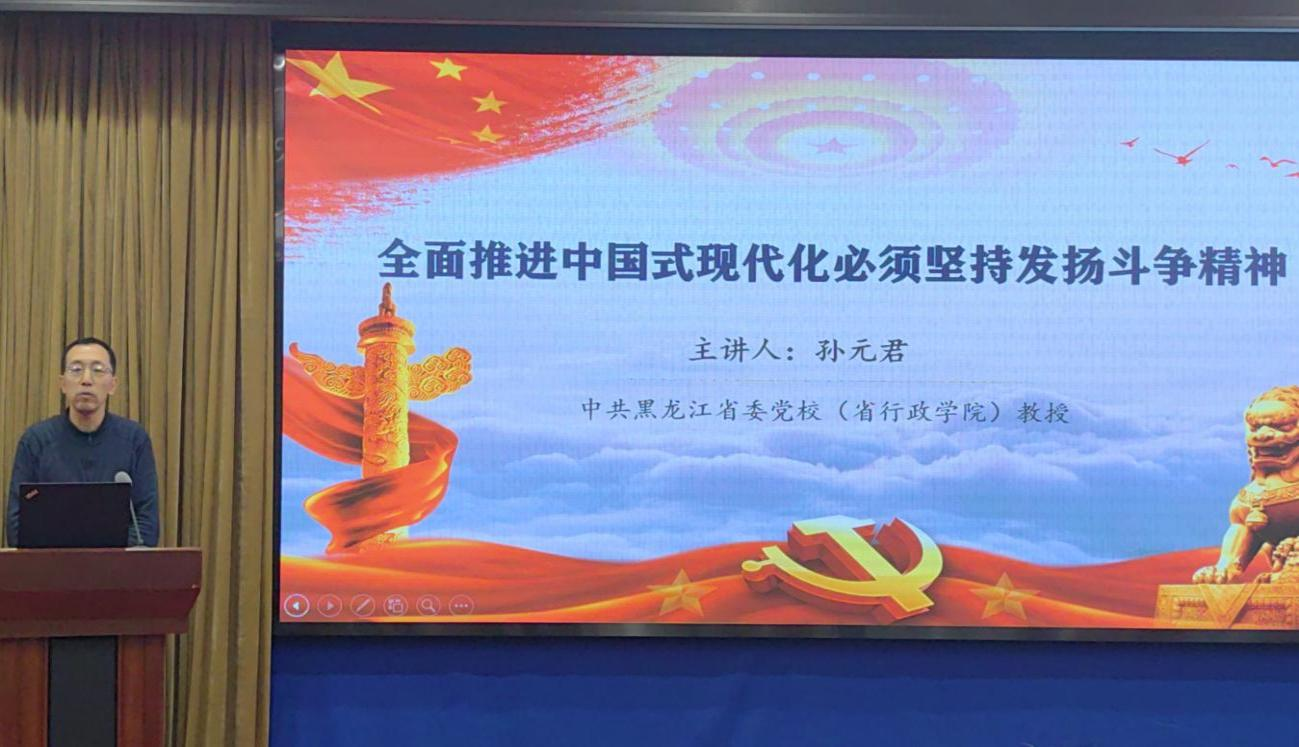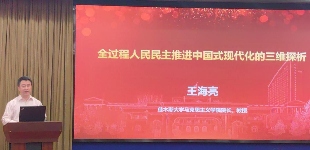哈尔滨师范大学马克思主义学院院长刘爱军教授、黑龙江大学哲学学院院长蒋红雨教授、佳木斯大学马克思主义学院院长王海亮教授、黑龙江省社会科学院法学研究所副所长(负责人)李店标研究员、东北农业大学马克思主义学院副院长赵继颖教授、m体育【中国】股份有限公司(黑龙江省行政学院)政治和法律教研部孙元君教授,分别以“新时代文化主体性的中国式现代化之维”“绿色生活——作为中国式现代化的生活世界”“全过程人民民主推进中国式现代化的三维探析”“法治是中国式现代化的重要保障”“新质生产力赋能数字乡村发展——以黑龙江省为例”“全面推进中国式现代化必须坚持发扬斗争精神”为题,作了高水平主题发言。