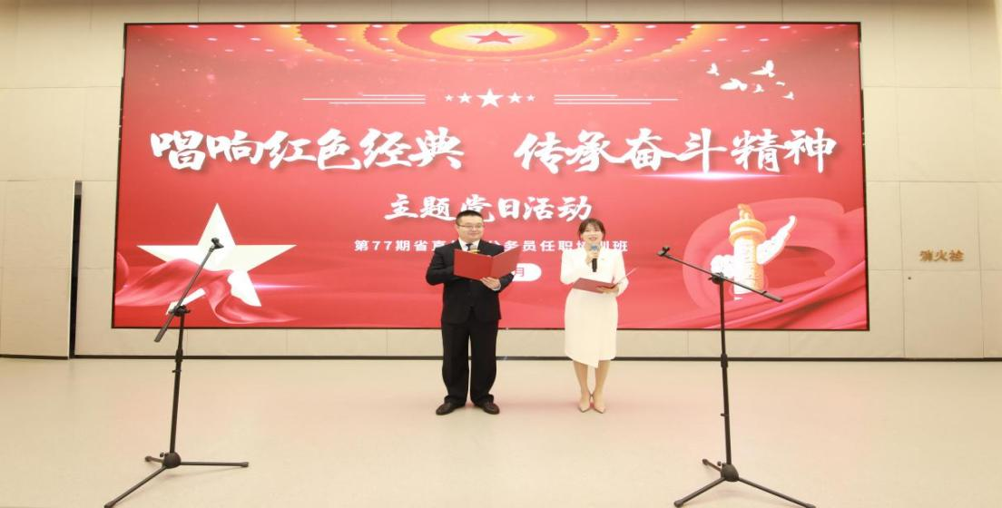 重温党的光辉历程,感悟红色文化的精神内涵,12月1日,第77期省直处级公务员任职培训班“唱响红色经典,传承奋斗精神”主题党日活动成功举办。全班103名学员齐聚一堂,以歌为媒、以乐传情,在红色旋律中传承初心使命,在互动交流中凝聚奋进力量,为任职培训注入了浓厚的党性教育氛围。