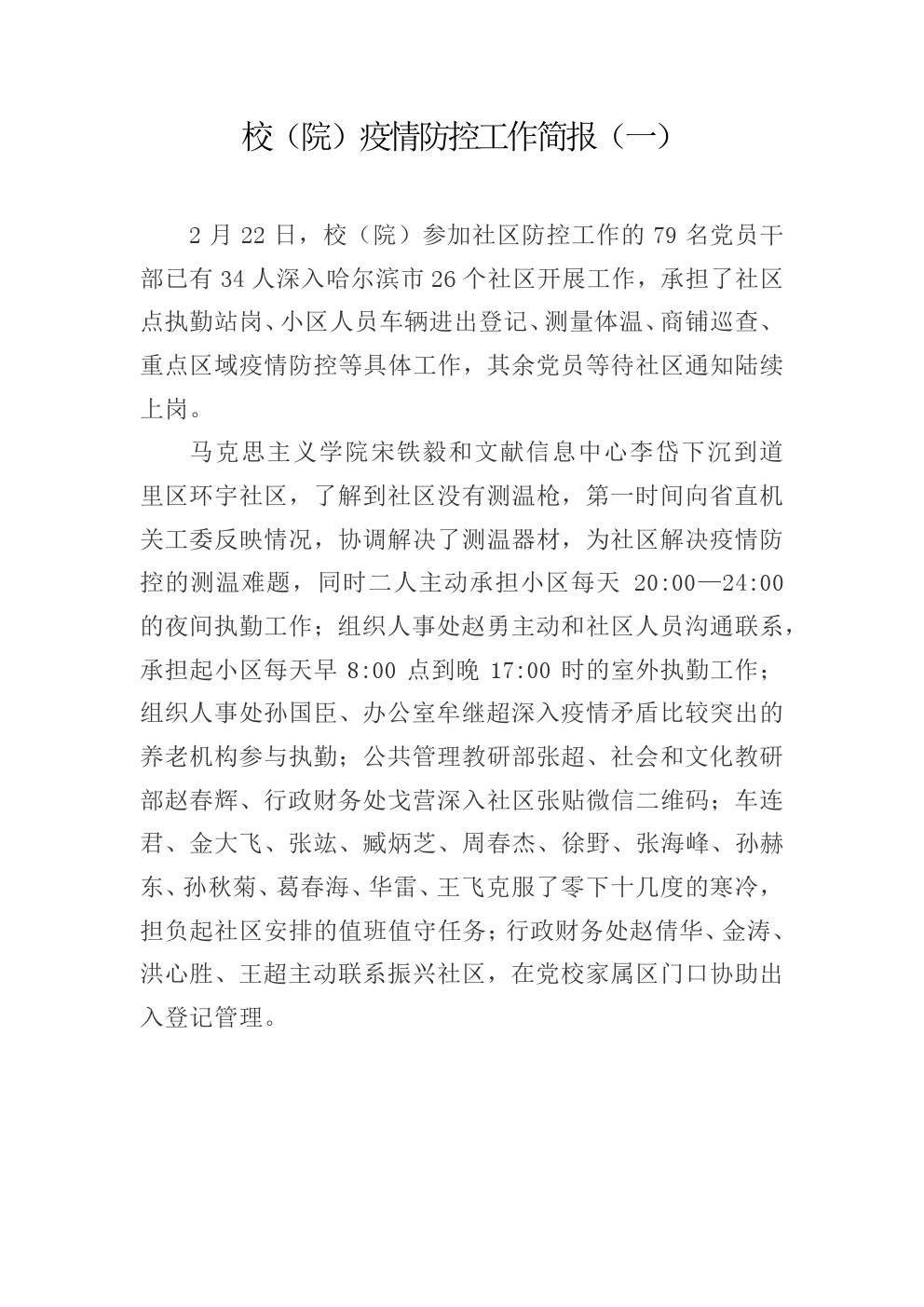 校(院)疫情防控工作简报(一)